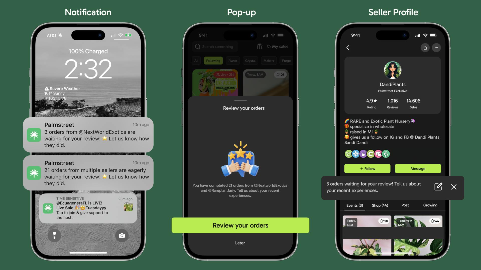 App pop-up: Upon order completion, a pop-up reminder will appear within the app, guiding buyers directly to pending reviews.